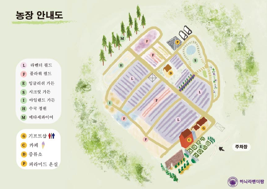 | 활동 | 라벤더 향기 가득한 산책로, 포토존, 향기 가게 등 다양한 볼거리 |