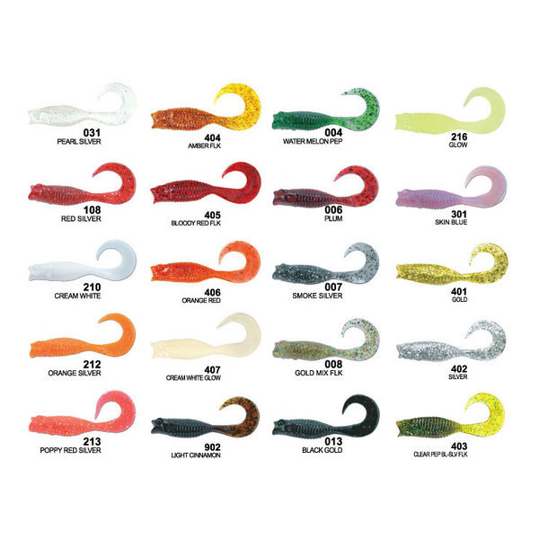 - Shad Tail Worms: 활발한 모양으로 담수 및 바닥 낚시에 효과적인 웜입니다.
