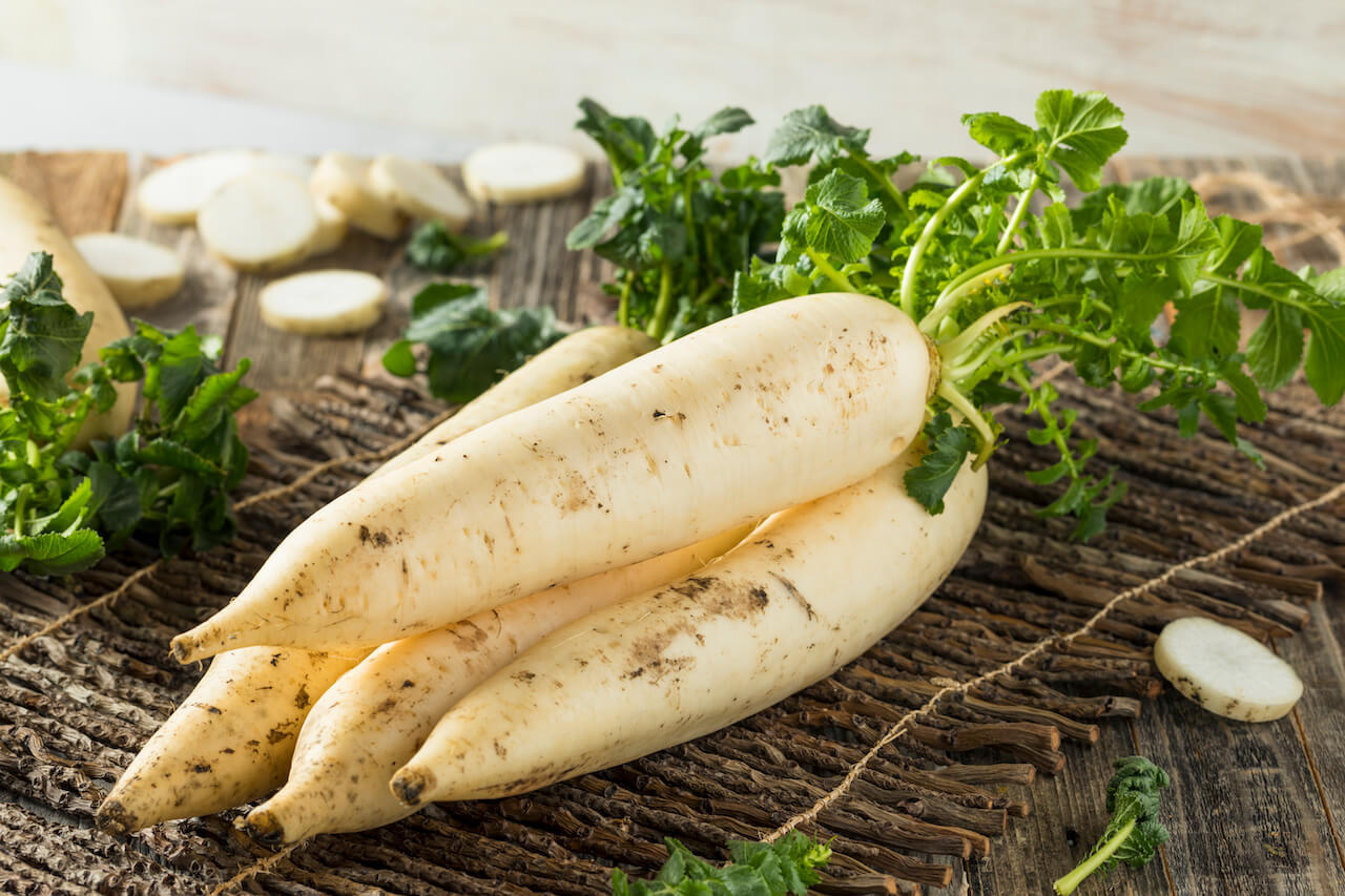 무에는 비타민 B1과 B2가 풍부하게 함유되어 있어 신진대사를 촉진하고 체지방 감소에 도움을 줍니다.