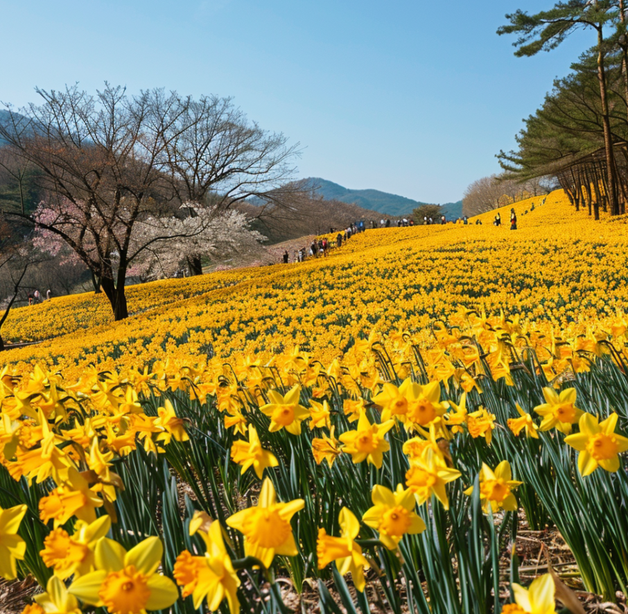 - 구례 수선화 축제: 전라남도 구례군의 지리산 치즈랜드에서 열리는 이 축제는 노란 수선화와 푸른 산맥의 조화가 장관이에요.