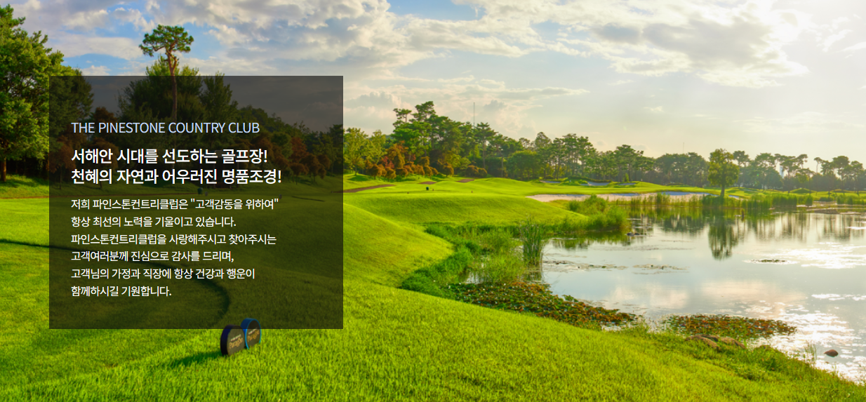 파인스톤CC는 넓은 페어웨이와 그린, 그리고 울창한 수목으로 둘러싸인 아름다운 코스로 유명합니다. 골프를 즐기는 동안 자연의 아름다움을 만끽하며, 여유와 휴식을 느낄 수 있는 공간을 제공합니다.
