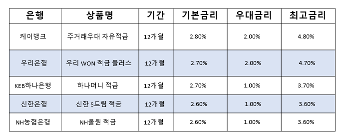 - 시중은행 적금이자 정리