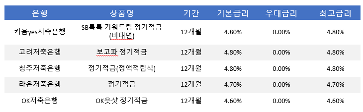 - 저축은행 적금이자 정리